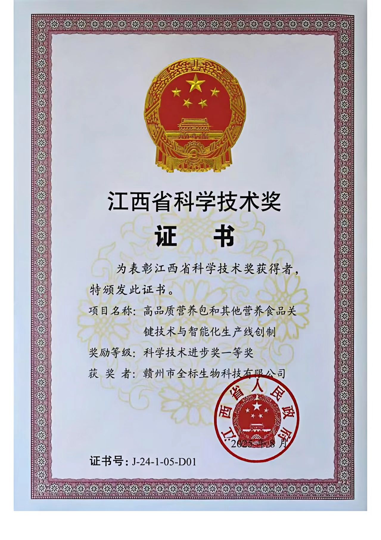 赣州全标生物科技牵头项目荣获江西省科技进步一等奖